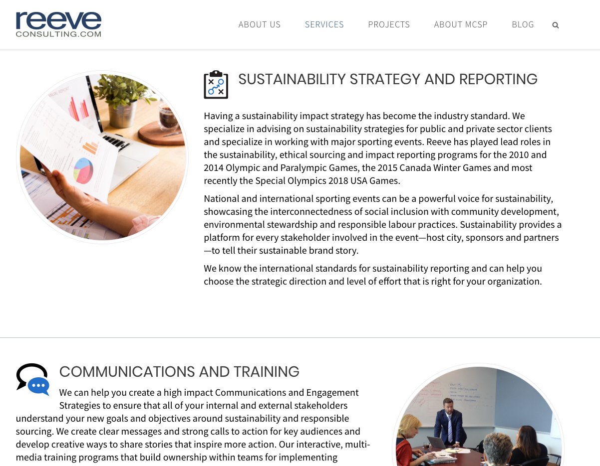 A new WordPress site for Vancouver-based sustainable purchasing and strategy consultants Reeve Consulting, including a blog and portfolio of their work.