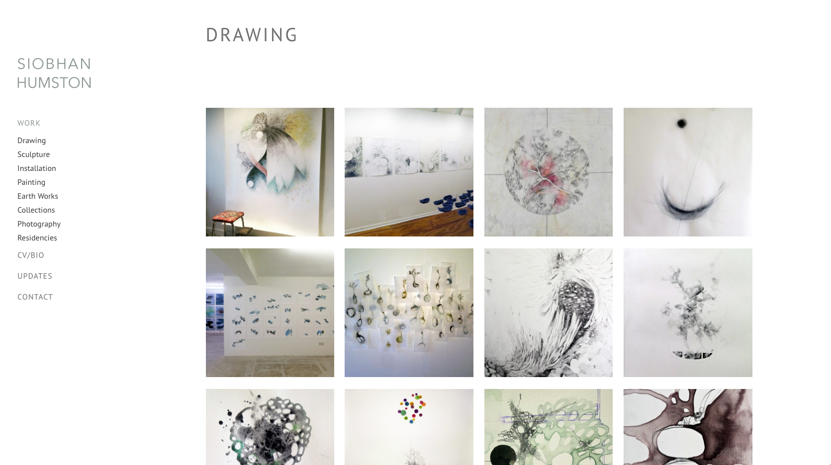 A redesign of visual artist Siobhán Humston's portfolio, providing a better showcase for her diverse collection of work and updates on her exhibitions all across the world.