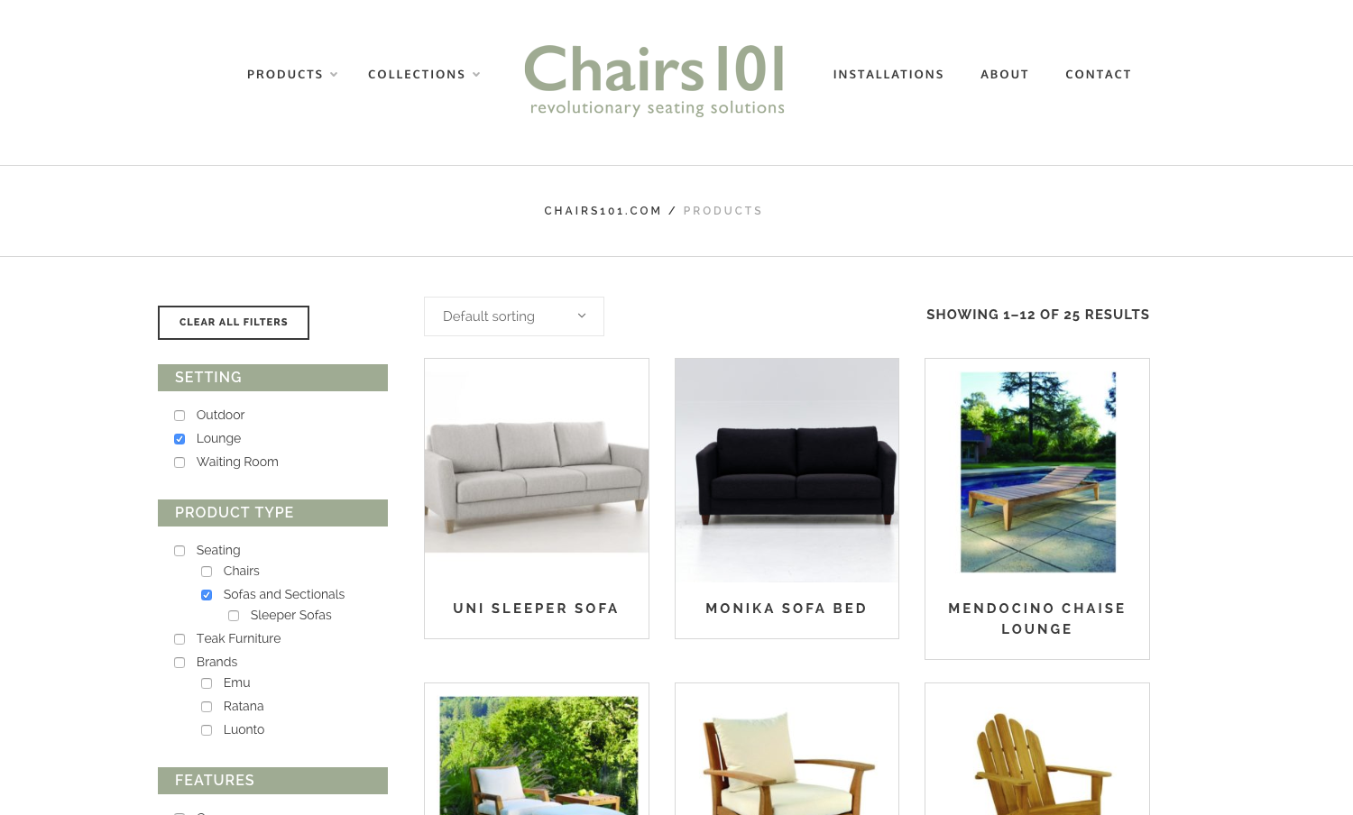 A complete overhaul of Vancouver-based commercial furniture supplier, Chairs 101. The site now allows users to search and filter through their product collection, which uses WooCommerce as its base.