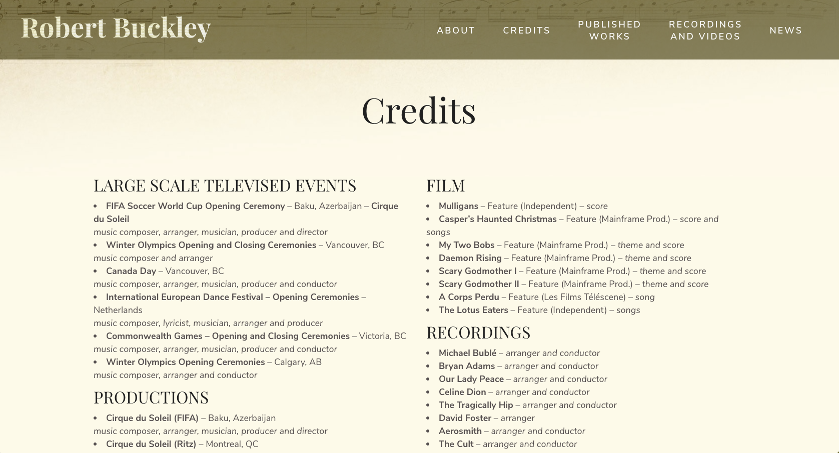 A new WordPress site for acclaimed composer Robert Buckley, making it easier for people to find his sheet music and listen to performances.